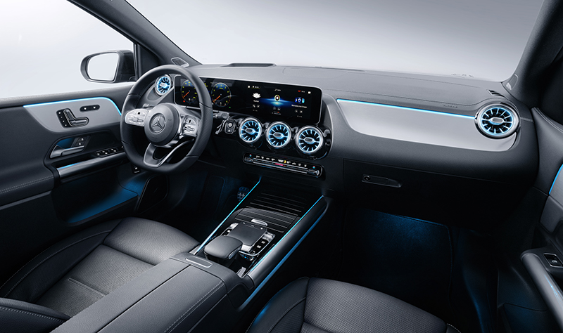 ห้องโดยสารปรับปรุงใหม่ให้หรูหราเช่นเดียวกันของ A-Class แต่ยังมีความเป็นเอกลักษณ์ของตน เริ่มต้นกับช่องแอร์ทรงกลม 5 ช่อง พร้อมวงแหวนเรืองแสง คอลโซลกลางเน้นควบคุมด้วยระบบสัมผัส มาในสีดำถอดแบบจาก E-Class ทั้งยังปรับแสงในห้องโดยสารได้ 64 สี และมีระบบเบาะนวด ENERGIZING seat kinetics