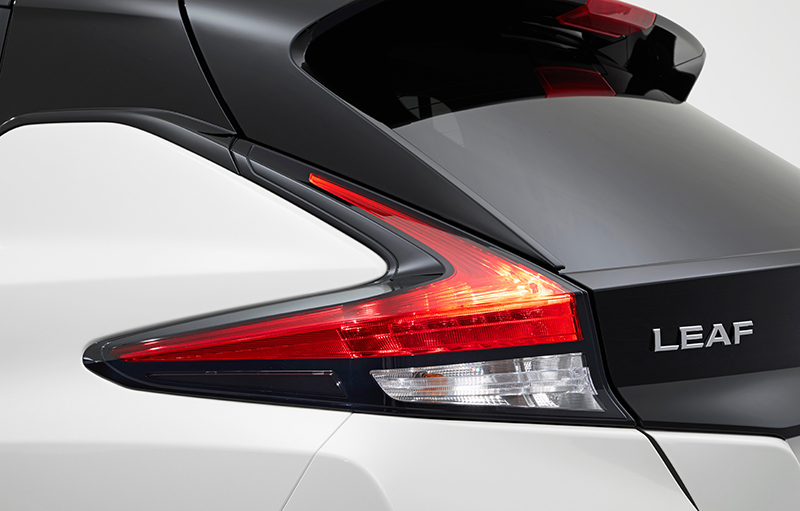 สปอยเลอร์หลังดูกลืนไปกับฝาท้ายอย่างแนบเนียน ซึ่งเมือผนวกเข้ากับฝากระโปรงหน้าที่เตี้ยและรับกับกระจกหน้า NEW Nissan Leaf จึงมีค่าสัมประสิทธิ์แรงเสียดทานที่ดี กันชนหลังพร้อมดิฟฟิวเซอร์ พร้อมล้อที่ออกแบบมาโดยเฉพาะมีส่วนช่วยเช่นกัน สำหรับอุปกรณ์ภายนอกมีดังนี้