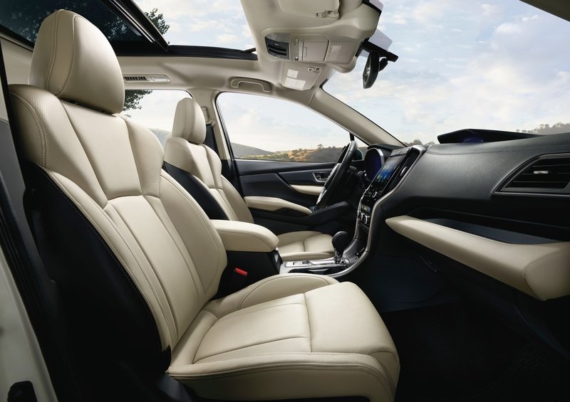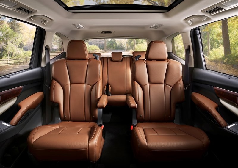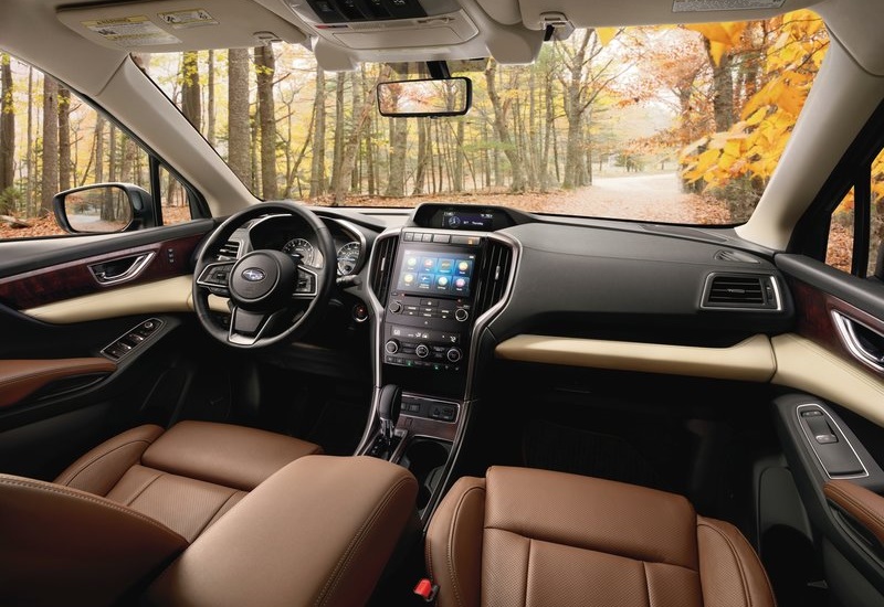 ในรุ่นท็อปของ All NEW Subaru Ascent จะใช้วัสดุหนังสีน้ำตาล Java Brown พร้อมลายไม้แบบด้าน ตกแต่งรอบห้องโดยสาร เบาะคู่หน้าปรับอุณหภูมิได้ เครื่องเสียงมาจาก Harman Kardon พร้อมลำโพง 14 จุด ส่วนหน้าจอสัมผัสมีขนาด 8 นิ้ว มาพร้อมกับระบบนำทางและ Subaru Starlink ปิดท้ายด้วยหลังคา Panoramic Sunroof