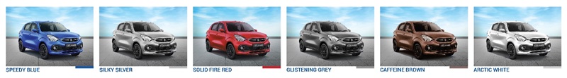 Suzuki Celerio รุ่นล่าสุด เปิดตัวแล้วที่อินเดีย มาพร้อมสีตัวถังมีให้เลือก 6 สี ประกอบด้วย สีน้ำเงิน Speedy Blue และ สีแดง Sapphire Red ซึ่งเป็นสองสีใหม่ ตามด้วย สีเงิน Silky Silver, สีเทา Glistening Grey, สีน้ำตาล Caffeine Brown และ สีขาว Arctic White ส่วนมิติตัวถัง มีรายละเอียดดังนี้