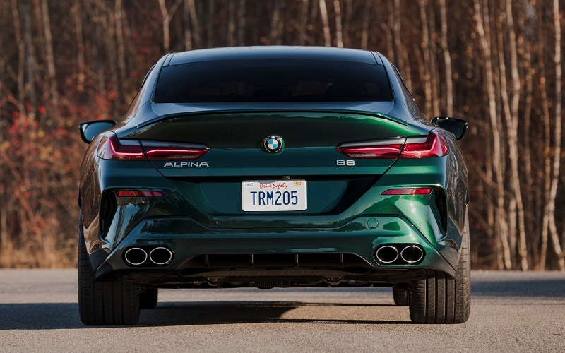 ALPINA B8 Gran Coupé ดูสง่างามและเส้นสายตัวถังไหลลื่น เสริมด้วยช่องดักลมกันชนหน้าขนาดใหญ่ เพื่อการหมุนเวียนอากาศในเครื่องยนต์ ด้านหลังมีดิฟฟิวเซอร์สีดำ รับกับท่อไอเสียปลายคู่ออกสองฝั่ง ปรับระดับเสียงได้ระหว่าง COMFORT และ SPORT ล้อเป็นลาย ALPINA CLASSIC ขนาด 21 นิ้ว กว้าง 8.5 นิ้ว ในด้านหน้า และ 10 นิ้ว ในด้านหลัง มาพร้อมยาง Ultra-High Performance ปิดท้ายกับสปอยเลอร์หลังแบบ lip
