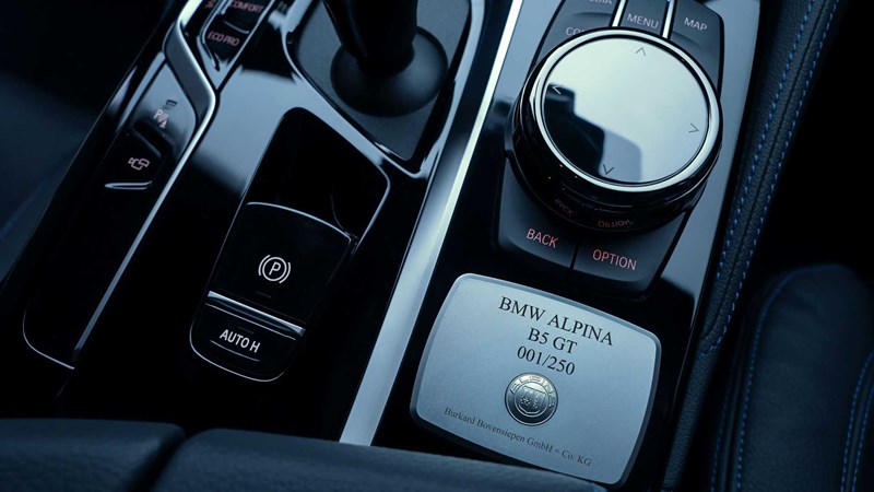 BMW Alpina B5 GT ได้รับการขนานนามว่าเป็น Alpina ที่ทรงพลังที่สุดเท่าที่เคยมีมา โดยเปิดตัวในฐานะรถยนต์รุ่นพิเศษผลิตจำกัด สำหรับสีตัวถังมาตรฐานมีทั้งสีน้ำเงิน Alpina Blue และ สีเขียว Alpina Green เสริมด้วยทางเลือกสีอื่นอย่าง สีน้ำเงิน Arctic Race Blue, สีน้ำเงินเข้ม Petrol Mica, สีเขียว Verde British Racing, สีเบจ Chalk, สีแดง Imola Red และสีม่วง Daytona Violet