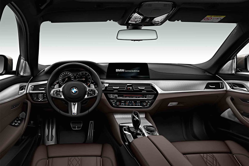 ภายในเสริมด้วยพวงมาลัยสปอร์ตหุ้มหนัง M Sport และ ยังมีมาตรวัดระบุสัญลักษณ์ M, แป้นเหยียบอลูมิเนียม และ ระบบเชื่อมต่อ BMW Connected ไว้เชื่อมต่อรถยนต์เข้ากับอุปกรณ์ต่างๆ นอกจากนี้เจ้าของ BMW M550d xDrive ยังสามารถติดตั้งเบาะ M Sport Seat หุ้มด้วยวัสดุหนัง Dakota หรือ Alcantara เพิ่มได้ด้วย