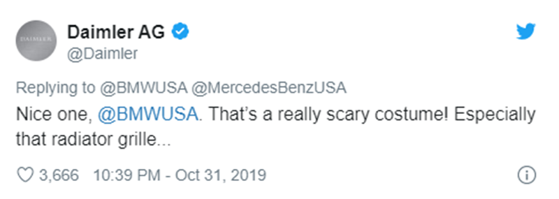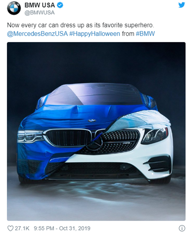 เป็นธรรมเนียมปฏิบัติระหว่าง BMW และ Mercedes-Benz ไปแล้ว ที่จะพักยกการแข่งขัน แล้วหันมาหยิกแกมหยอกเพื่อสร้างสีสันให้กับวงการรถยนต์ โดยครั้งล่าสุดเกิดขึ้นในเทศกาล Halloween ที่ผ่านมา และมี BMW เป็นคนเปิดก่อนที่ Mercedes-Benz มารับมุขให้ ชนิดตอกฝาโลงให้คู่แข่ง