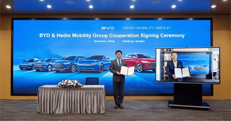 เมื่อวันที่ 1 สิงหาคมที่ผ่านมา BYD ได้เซ็นสัญญาความร่วมมือกับ Hedin Mobility Group ตัวแทนจำหน่ายรถยนต์รายใหญ่ของยุโรป ซึ่งมีแบรนด์ในมือมากกว่า 30 แบรนด์ และมี dealer ในเครือมากกว่า 230 แห่งทั่วยุโรป รวมถึงสวีเดนและเยอรมนี โดยสองประเทศนี้จะเป็นตลาดแรกในยุโรปที่ BYD จะเข้าไปบุกร่วมกับ Hedin Mobility Group