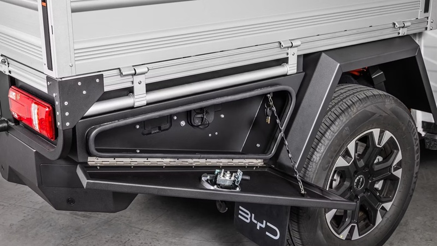 ถาดกระบะอะลูมิเนียมหลัง BYD Shark 6 Dynamic ผลิตโดย Ironman 4×4 มาพร้อมกับจุดยึด 8 ตำแหน่งพร้อมกล่องเก็บของ 2 กล่องที่สามารถล็อคได้ และยังสามารถสั่งถาดสไลด์ด้านหลังท้ายกระบะเพิ่มได้ แต่ราคาจะมีการแจ้งในภายหลัง สำหรับตำแหน่งชาร์จไฟนั้น ย้ายมาอยู่ด้านหลังของล้อหลังฝั่งขวา พร้อมฝาปิดกันน้ำขนาดใหญ่ ส่วนอุปกรณ์อื่นที่หายไปตามข้อมูลของ BYD คือหน้าจอแสดงผลในห้องโดยสารที่ลดลงจาก 15.6 เหลือ 12.8 นิ้ว