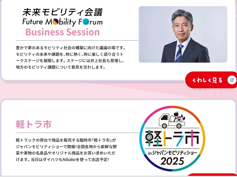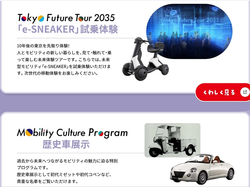 พื้นที่จัดแสดงของ Daihatsu ในงาน Japan Mobility Show 2025 ยังมีกิจกรรมอื่นนอกจากการจัดแสดงรถยนต์ต้นแบบ โดยมีทั้งพื้นที่เรียนรู้สำหรับเด็กมัธยมให้ทดลองการสร้างวีลแชร์ไฟฟ้า, กิจกรรมระบายสีสำหรับเด็กเล็ก, ทดลองขี่ยานพาหนะ e-SNEAKER, พื้นที่จัดแสดงรถยนต์รุ่นดังในอดีตของค่ายรวมถึง Midget รุ่นแรก และ Copen รุ่นแรก, ฟอรั่มเรื่องเทรนด์การใช้ยานพาหนะในอนาคต ในเขตพื้นที่นอกเมือง โดยผู้บริหารของ Daihatsu และ พื้นที่เปิดท้ายกระบะ K-Car ขายของที่มีของสดจากทั่วประเทศ ให้ผู้ชมงานได้จับจ่ายกัน