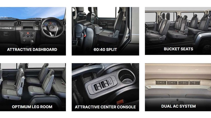 เบาะแถวสุดท้ายสามารถพับเก็บได้เช่นกัน เพื่อเพิ่มพื้นที่บรรทุกสัมภาระ สำหรับอุปกรณ์อำนวยความสะดวกที่ให้มาใน Force Citiline มีทั้งกระจกไฟฟ้าทั้ง 4 บาน, Central Lock และช่องแอร์แยกสำหรับผู้โดยสารตอนหลัง ส่วนเครื่องเสียงนั้นไม่มีมาให้แม้แต่ลำโพง มีเพียงช่องว่างขนาด 2-din ให้ลูกค้าไปเลือกซื้อวิทยุมาติดตั้งเอาเองภายหลัง