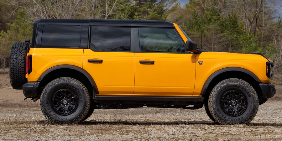 Ford Bronco Wildtrak สามารถเลือกเปลี่ยนสีหลังคาได้หลายรูปแบบ พร้อมเพิ่มความเข้มตกแต่งรอบคันด้วยสีดำกับ Black Appearance Package ในส่วนของสมรรถนะ มาพร้อมกับขุมพลัง EcoBoost เครื่องยนต์เบนซิน แบบ V6 ขนาด 2.7 ลิตร เทอร์โบ กำลังสูงสุด 330 แรงม้า จับคู่เกียร์อัตโนมัติ 10 จังหวะ เสริมด้วย Sasquatch Off-Road Package ที่เปลี่ยนไปใช้โช๊คอัพ HOSS 3.0 แบบ internal bypass จาก FOX