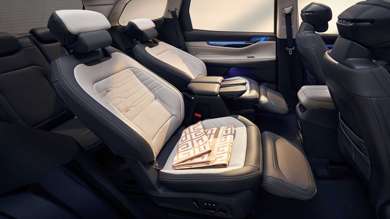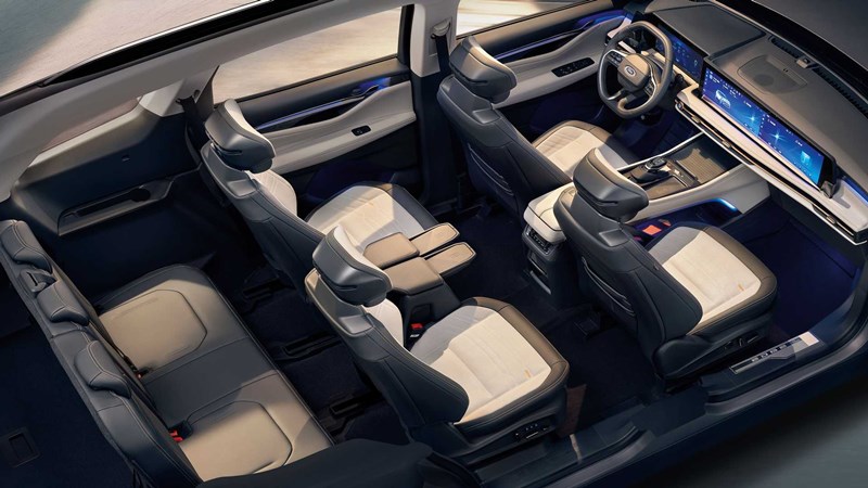 ห้องโดยสารของ Ford Edge L มีเบาะ 3 แถว รองรับผู้โดยสาร 7 ที่นั่ง จัดวางในลักษณะ 2+2+3 โดยเบาะแถวที่สองเป็นแบบ Captain Seat สามารถปรับเอนนอนได้ ด้านลูกเล่นอัดแน่นทั้งมาตวัดแบบดิจิตอลขนาด 12.3 นิ้ว, หน้าจอแสดงผลแบบ 4K ขนาด 27 นิ้ว ยาวจนสุดฝั่งผู้โดยสารหน้า, เครื่องเสียง Bang & Olufsen และหลังคา Panoramic Sunroof ขนาดใหญ่
