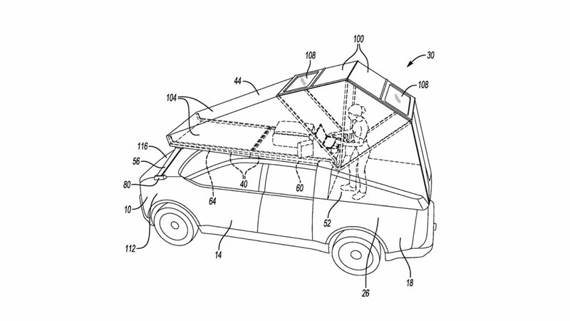 เมื่อพูดถึงเต๊นท์บนหลังคารถยนต์ หลายท่านน่าจะนึกภาพเต๊นท์ออก ซึ่งแม้จะพับเก็บแล้วแต่ยังมีขนาดใหญ่อยู่ดี ทั้งยังต้านลมในขณะขับขี่จนก่อให้เกิดเสียงรบกวนดังกว่าปกติ รวมถึงเพิ่มอัตราสิ้นเปลืองพลังงานอีกด้วย แต่ดูเหมือนว่า Ford จะคิดค้นนวัตกรรมใหม่ออก ซึ่งเป็นเต๊นท์สำหรับรถกระบะ และได้นำไปจดสิทธิบัตรแล้วในสหรัฐฯ เมื่อเดือนกุมภาพันธ์ 2024 ก่อนที่หน่วยงานสิทธิบัตรจะเผยแพร่ข้อมูลในสัปดาห์ที่ผ่านมา