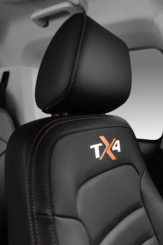 ทุกคันมาในสี two-tone ด้วยการตัดสีน้ำเงิน Navy Blue รอบคัน ห้องโดยสารหุ้มด้วยหนังสังเคราะห์สีดำ ตัดด้วยด้ายสีส้ม พร้อมประทับตรา TX4 บนพนักพิง ด้านอุปกรณ์มาตรฐานมีครบครันทั้ง ระบบปรับอากาศแบบแยกฝั่ง, หลังคา Sunroof, เครื่องเสียง JBL พร้อมหน้าจอแสดงผลขนาด 6.75 นิ้ว และ หน้าจอ MID ทั้งยังมีแดชบอร์ดที่ออกแบบมาให้รองรับ การติดตั้งอุปกรณ์เกี่ยวกับ off-road เพิ่มได้