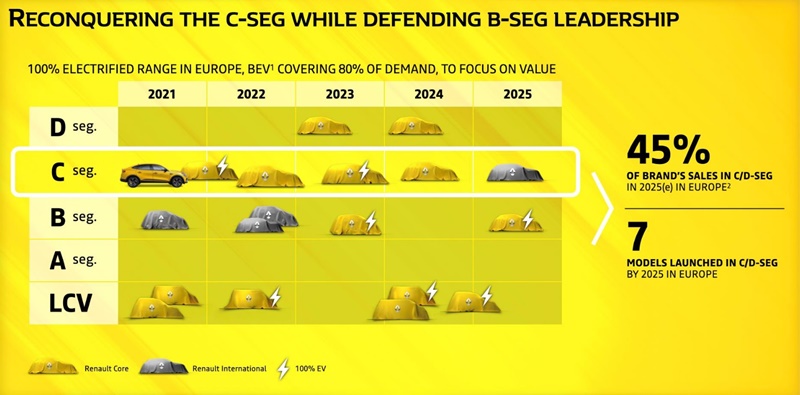 เน้นความทันสมัยและนวัตกรรม พุ่งเป้าไปที่จุดแข็งของแบรนด์ใน C-Segment ต่อยอดความสำเร็จในยุโรป รวมไปถึงตลาดหลักอย่างละตินอเมริกาและรัสเซีย พร้อมตั้งเป้าเป็นผู้นำในด้านขุมพลังไฟฟ้า ภายในปี 2025 โดยเฉพาะในยุโรป ในส่วนของผลิตภัณฑ์ มีแผนเปิดตัวรถยนต์รุ่นหลัก 14 รุ่นใหม่ ภายในปี 2025 โดย 7 รุ่นในนี้เป็น EV ที่เหลือจะใช้ระบบ Hybrid ทั้งยังระบุด้วยว่า 7 รุ่นในนี้เป็น C/D Segment