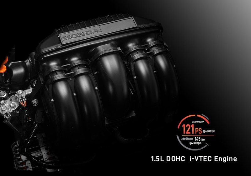 ขุมพลังของ Honda City Hatchback RS เวอร์ชั่นอินโดนีเซีย เป็นเครื่องยนต์เบนซิน แบบ 4 สูบ ขนาด 1,498 ซีซี. กระบอกสูบ x ระยะช่วงชัก : 73.0 x 89.4 มิลลิเมตร อัตราส่วนกำลังอัด 10.6 : 1 กำลังสูงสุด 121 แรงม้า ที่ 6,600 รอบ/นาที แรงบิดสูงสุด 145 นิวตันเมตร ที่ 4,300 รอบ/นาที จับคู่กับเกียร์ธรรมดา 6 จังหวะ หรือ เกียร์อัตโนมัติ CVT ขับเคลื่อนล้อคู่หน้า ส่วนระบบความปลอดภัยที่ให้มา ประกอบด้วย