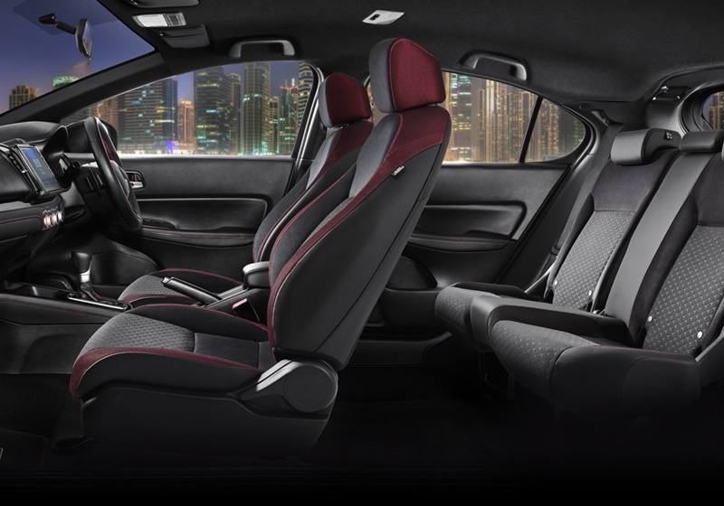 ห้องโดยสารตกแต่งด้วยมาตรวัดเฉพาะรุ่นตัดสีแดง รับกับแผงควบคุมระบบปรับอากาศที่เปล่งแสงสีแดง เสริมด้วยหน้าจอสัมผัสขนาด 8 นิ้ว ทำงานร่วมกับลำโพง 8 ตำแหน่ง เบาะเป็นแบบกึ่งผ้าและหนัง เดินตะเข็บด้ายสีแดง ทั้งยังเป็นรุ่นแรกในระดับเดียวกัน ที่มีระบบสตาร์ทเครื่องยนต์จากภายนอกได้