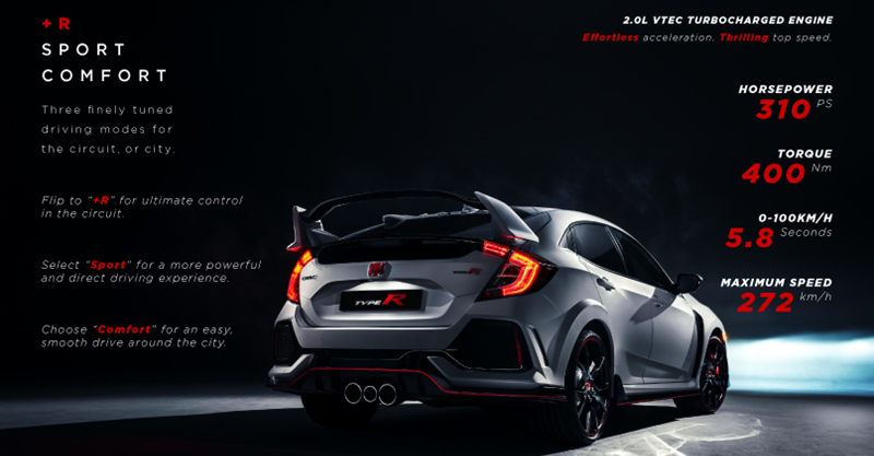 สาวก Honda สัญชาติมาเลเซียถึงคราวเสียเงินก้อนใหญ่กันแล้ว เนื่องจาก Honda ประเทศมาเลเซียได้เปิดตัว Honda Civic Type R ซึ่งนำเข้าจากประเทศอังกฤษ ทั้งยังตั้งราคาไล่เลี่ยกับรุ่นที่ออกจำหน่ายที่ประเทศอินโดนีเซีย ซึ่งออกขายไปตั้งแต่เดือนสิงหาคมที่ผ่านมา โดย Honda Civic Type R ทั้ง 2 ตลาดมาพร้อมกับขุมพลัง 310 แรงม้า (PS)