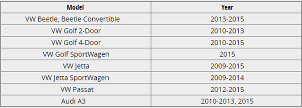 ใช้เครื่องยนต์ดีเซล 2.0 TDI ที่มีปัญหาเท่านั้น ส่วนรายละเอียดของแต่ละรุ่น ปรากฏอยู่ที่