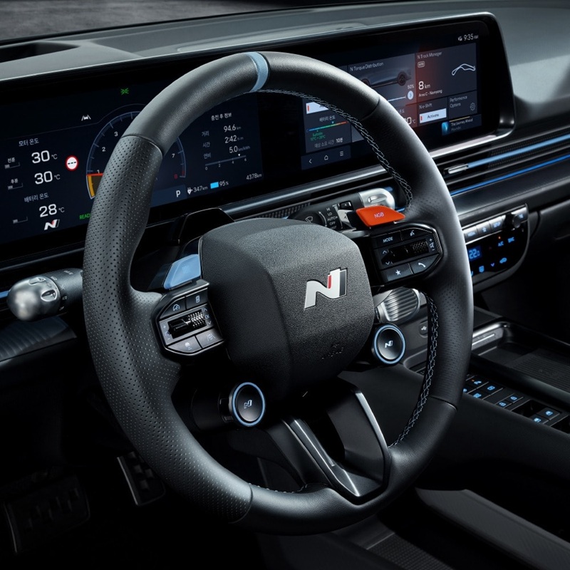 ชุดแต่ง Carbon Aero Package ใน IONIQ 6 N เปลี่ยนวัสดุหุ้มพวงมาลัยไปเป็นหนัง Pasubio พร้อมระบุตำแหน่ง 12 นาฬิกาด้วยสีฟ้า Performance Blue คอลโซลกลางหุ้มด้วยหนังกลับ กันเตะประตูทำจากคาร์บอนไฟเบอร์ และยังมีพรมพื้น N Performance พร้อมเข็มขัดนิรภัย Sabelt ในส่วนของการอัพเกรดสมรรถนะ มีผ้าเบรกจาก Ferodo เกรดที่ใช้ได้ทั้งในสนามแข่งและชีวิตประจำวัน เป็นทางเลือกให้สั่งซื้อเพิ่ม