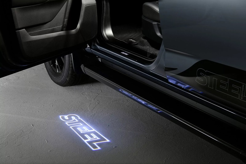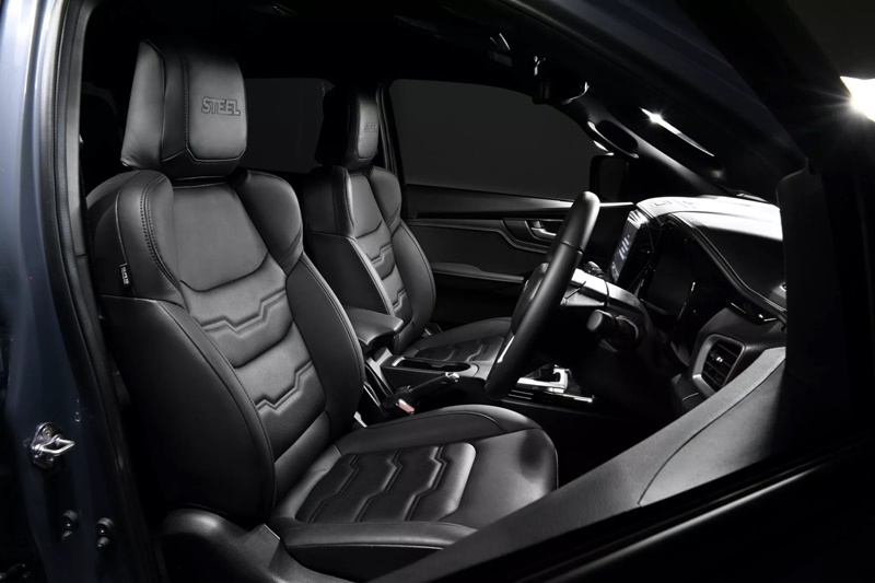 Isuzu D-Max Steel Edition เพิ่มกราฟฟิกชื่อรุ่นบนชายล่างประตูหลัง และมีโลโก้บนฝาท้าย ห้องโดยสารปักชื่อรุ่นบนพนักพิงศีรษะ ทั้งยังมีโลโก้บนกันเตะประตู, ไฟส่องพื้น และพรมพื้นเฉพาะรุ่น ด้านอุปกรณ์มาตรฐานอื่นมีทั้งเบาะหนัง ฝั่งคนขับปรับไฟฟ้า, ระบบปรับอากาศแบบ Dual Zone, หน้าจอสัมผัสขนาด 9 นิ้ว รองรับการเชื่อมต่อ Apple CarPlay & Android Auto พร้อมทำงานร่วมกับกล้องมองหลัง และเซนเซอร์ถอย