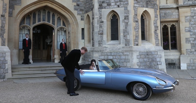 ในพิธีดังกล่าว Jaguar E-Type Zero ได้รับภารกิจให้เป็นรถยนต์พระที่นั่งของ เจ้าชาย Harry ขับพา Markle จากปราสาท Windsor ไปยัง Frogmore House ซึ่งตั้งอยู่ในบริเวณเดียวกัน เพื่อไปร่วมพิธีฉลองที่มีแขกผู้มีเกียรติ รอแสดงความยินดีอยู่