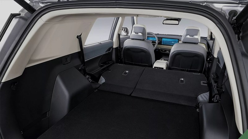 ห้องโดยสารของ KG Mobility Torres EVX มาพร้อมกับหน้าจอแสดงผลคู่ ขนาดจอละ 12.3 นิ้ว เชื่อมต่อให้เป็นจอเดียวกัน วัสดุตกแต่งมีทั้งหนังสังเคราะห์และลายไม้ เสริมด้วยคอลโซลกลางแบบยกระดับ floating ทั้งยังสามารถติดตั้งหลังคา panoramic sunroof เพิ่มได้ สำหรับความจุพื้นที่บรรทุกสัมภาระเพิ่มขึ้น จากรุ่นเครื่องยนต์สันดาปที่มี 703 ลิตร เป็น 839 ลิตร