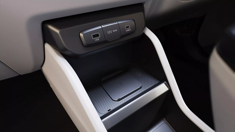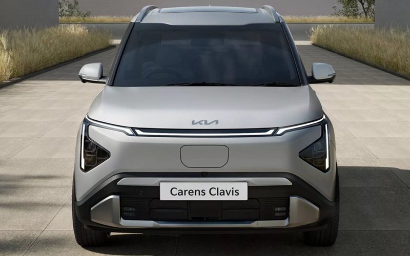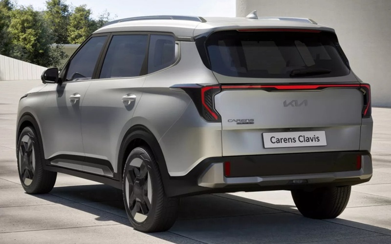 ภายนอกของ Kia Carens Clavis ขุมพลัง EV เพิ่มช่องชาร์จบริเวณกระจังหน้าปิดตาย เสริมด้วยแถบไฟ LED เชื่อมต่อไฟหน้าเข้าหากัน โดยรุ่นเครื่องยนต์สันดาปจะเป็นเพียงแถบสีดำ ช่องลมกันชนหน้าปรับดีไซน์ใหม่ และตกแต่งชายล่างด้วยแถบสีเงิน เสริมอรรถประโยชน์ด้วยช่องเก็บของใต้ฝากระโปรงหน้าความจุ 25 ลิตร ล้อเปลี่ยนลายใหม่เน้นลู่ลมขนาด 17 นิ้ว ส่วนด้านท้ายมีเพียงโลโก้ EV ที่เพิ่มเข้ามาจากเดิม