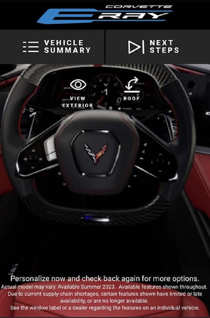 Chevrolet Corvette รุ่นล่าสุดในตัวถังรหัส C8 ไม่ได้เป็น Corvette รุ่นแรกที่มาพร้อมกับขุมพลังวางกลางเท่านั้น แต่จะยังเป็นรุ่นแรกที่จะมีทางเลือกระบบขับเคลื่อนสี่ล้อและขุมพลัง Hybrid ให้เลือกด้วย ล่าสุด เมื่อวันที่ 8 ธันวาคมที่ผ่านมา มีข้อมูล Chevrolet Corvette E-Ray Hybrid หลุดมาทาง website ของทางการ แม้บริษัทจะรีบลบอย่างรวดเร็ว แต่ก็มีคนแคปทันและนำมาเผยแพร่ต่อดังที่เห็น