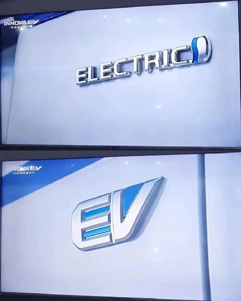 Toyota Innova EV Concept มาในตัวถังสีขาวตัดด้วยแถบสีฟ้าด้านข้าง ตัดชายล่างตัวถังด้วยสีดำ ตอกย้ำความเป็น EV ด้วยกราฟฟิก Innova EV บริเวณเสาหลังคา C-Pillar พร้อมโลโก้ EV และ Electric ด้านหลัง กระจังหน้าเปลี่ยนเป็นแบบปิดตายพร้อมตกแต่งแถบไฟ LED ในโคมไฟหน้าด้วยสีฟ้า ตามสมัยนิยมของรถยนต์ไฟฟ้า ส่วนกันชนหน้าและล้อออกแบบใหม่เช่นกัน