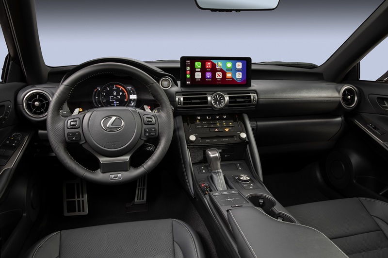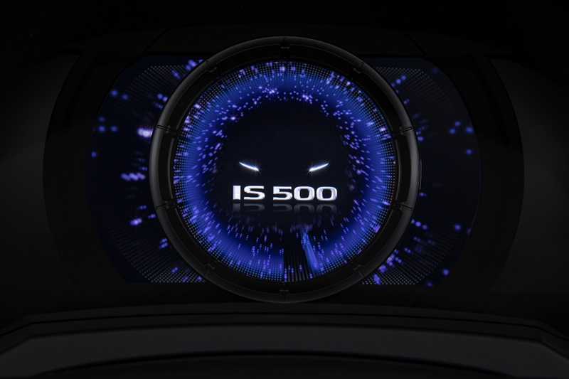 ห้องโดยสารมาในสีดำ ตกแต่งพิเศษกับมาตรวัดเป็นของเฉพาะรุ่น แสดงชื่อ IS 500 เสริมด้วยพวงมาลัยสามก้านหุ้มหนังสีดำปรับอุณหภูมิได้ ประทับตรา F SPORT Performance และ กันเตะประตู พร้อมแป้นเบรก, คันเร่ง และ ที่พักขาแบบ IS F SPORT