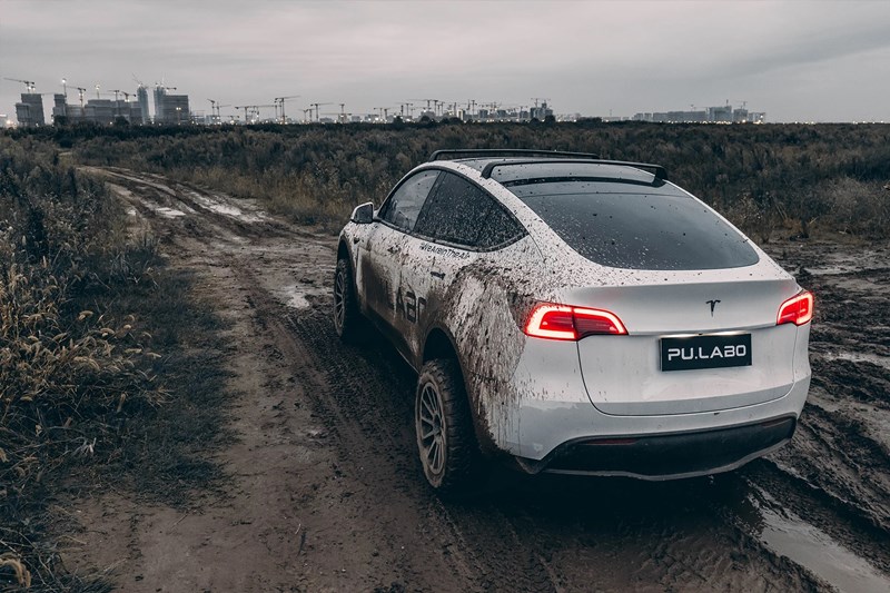ในช่วงปลายปีที่ผ่านมา สำนัก Delta4x4 จากเยอรมนี เคยเปิดตัวชุดยกสูงช่วงล่างของ Tesla Model Y ขึ้นมาอีก 1.3 นิ้ว ด้วยการรอง spacer และใส่ยางที่มีขนาดใหญ่ขึ้น แต่ล่าสุดเมื่อวันที่ 10 ตุลาคม 2023 มี startup จากจีนนาม PU.LABO เสนอทางเลือกในการยกสูงอีกระดับไม่ใช่แค่สำหรับ Tesla Model Y เท่านั้น แต่ยังรวมถึง Model 3 อีกด้วย โดยสามารถความสูงเพิ่มได้มากสุดจากเดิม 5 นิ้ว