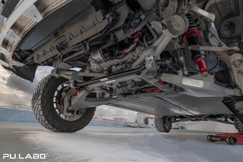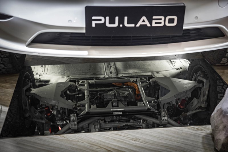 PU.LABO ระบุว่าบริษัทได้ศึกษารถยนต์ไฟฟ้า off-road มานานกว่าสามปี พร้อมกับทำการพัฒนาและทดลองชุดยกสูงช่วงล่างระยะยาว ภายใต้สภาพแวดล้อมที่แตกต่างกัน ทั้งทะเลทราย, โคลน และพื้นที่ห่างไกล ครอบคลุมระยะทางหลายหมื่นกิโลเมตร ทั้งยังมีการทดสอบเหินข้ามเนินด้วย เพื่อให้มั่นใจว่าช่วงล่างชุดนี้สามารถตอบโจทย์สาย hard-core ได้ แม้บริษัทจะไม่แนะนำให้ลูกค้านำรถไป jump ข้ามเนินก็ตาม