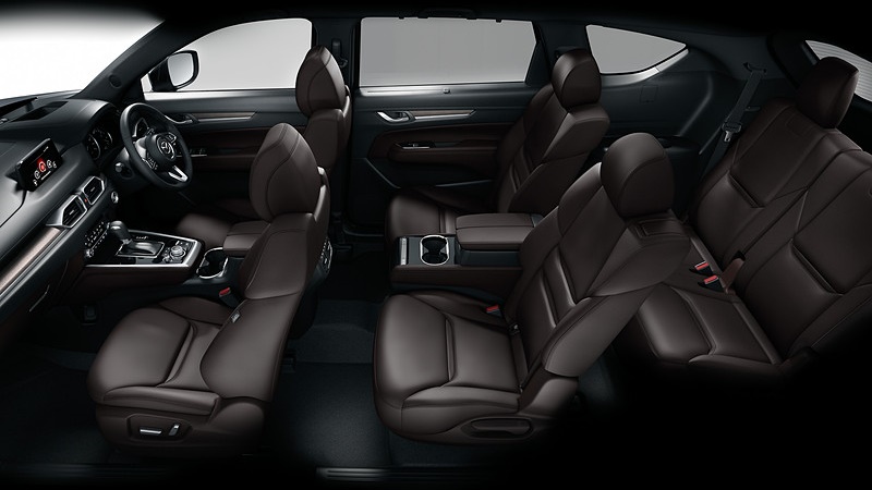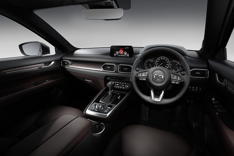 ห้องโดยสารของ Mazda CX-8 รุ่นปรับอุปกรณ์ ผ่านการปรับดีไซน์แผงควบคุมระบบปรับอากาศใหม่ ทั้งวัสดุและปุ่มกด ที่วางแขนตรงกลางสำหรับผู้โดยสารตอนหน้า ลดความสูงลง 15 มิลลิเมตร ให้ผู้ใช้งานวางแขนได้ถูกอิริยาบถกว่าเดิม นอกจากนั้น ยังมีการเพิ่มวัสดุซับเสียงบริเวณฝาท้าย และที่เก็บของด้านหลัง ให้เงียบขึ้น ให้ผู้โดยสารในทุกตอนพูดคุยกันรู้เรื่อง ด้วยระดับเสียงปกติ