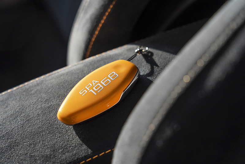 มากไปกว่านั้น พวงกุญแจรถ ยังให้ความพิเศษและโดดเด่นสะดุดตา โดยพ่นเคลือบด้วยสีส้มพิเศษ แบบเดียวกับสีตัวถัง พร้อมเซาะร่องด้วยตัวอักษร Spa 1968 สีเงิน ที่สามารถมองเห็นได้อย่างเด่นชัด