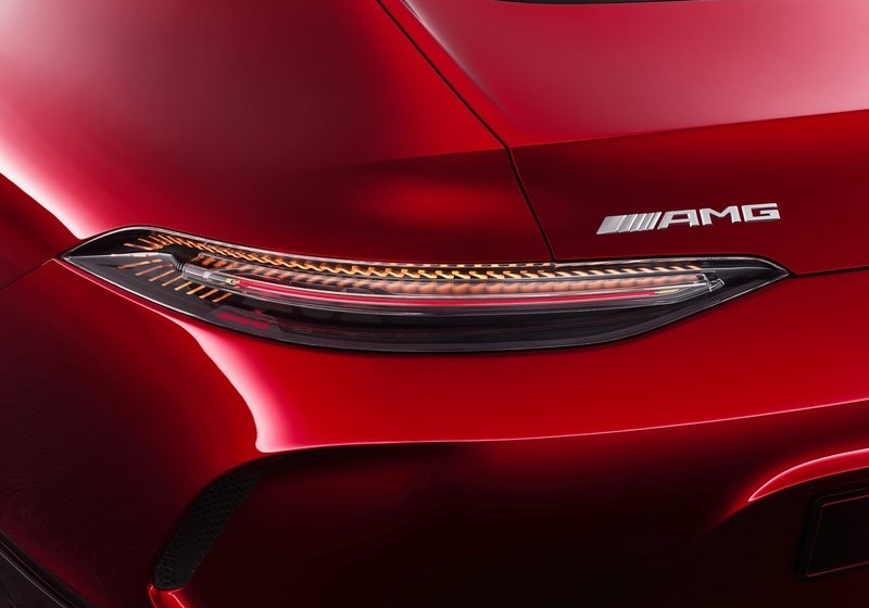 มุมมองด้านข้างของ Mercedes-AMG GT Concept เผยให้เห็นแนวหลังคาที่ลาดชันใน