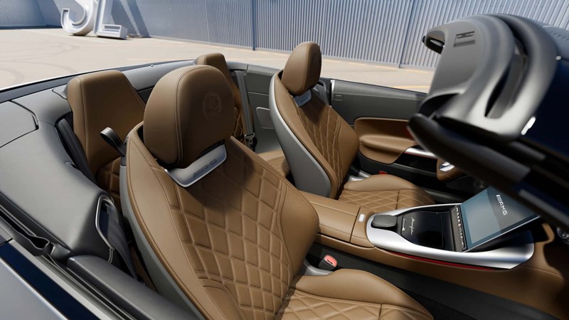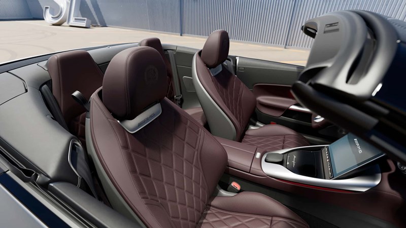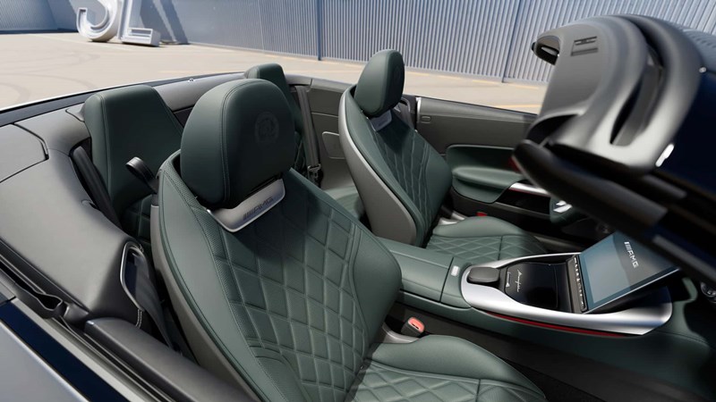 บ่งบอกความพิเศษของ MANUFAKTUR ด้วยโลโก้ AMG ปักบนพนักพิงศีรษะคู่หน้า, พรมพื้น และกันเตะประตู เสริมด้วยโลโก้ MANUFAKTUR แบบโครเมี่ยมบนคอลโซลกลาง และบนกันเตะประตู Mercedes-AMG SL MANUFAKTUR เปิดตัวในเยอรมนี เมื่อวันที่ 23 พฤษภาคม 2023 และจะเริ่มสั่งซื้อได้ตั้งแต่ไตรมาสที่ 4 ของปีนี้เป็นต้นไป