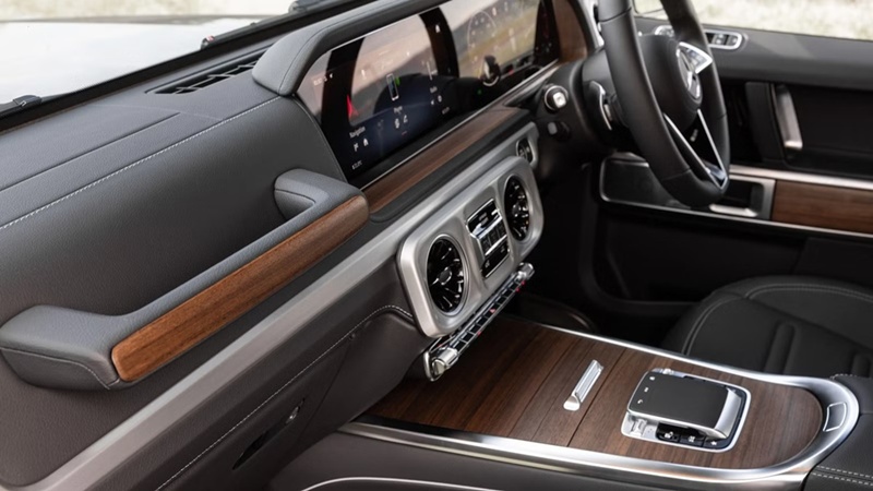 Mercedes-Benz G450d มาพร้อมไฟหน้า LED ซึ่งมีระบบปรับระดับไฟสูงแบบ Adaptive เสริมมาดพร้อมลุยด้วยยางอะไหล่ห้อยท้าย, แผ่งยางกันโคลนกระเด็นหน้าหลัง และล้อขนาด 18 นิ้ว ซึ่งสามารถสั่งเปลี่ยนเป็นยาง All-terrain ได้โดยที่ไม่มีค่าใช้จ่ายเพิ่ม ภายในมีหลังคา Sunroof พร้อมระบบแสดงผล MBUX ซึ่งมีหน้ามาตรวัด และหน้าจอสัมผัสขนาดจอละ 12.3 นิ้ว เบาะคู่หน้าปรับการทำงานด้วยไฟฟ้า ทั้งยังมีระบบอุ่นเบาะทั้งหน้าและหลัง พวงมาลัยหุ้มหนัง Nappa และตกแต่งด้วยไม้ Walnut ส่วนเครื่องเสียงเป็นของ Burmester