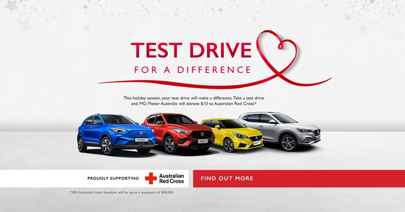 MG Motor Australia เปิดตัวกิจกรรมการกุศลในชื่อ Test Drive for a Difference (ทดลองขับเพื่อความแตกต่าง) ซึ่งไม่ได้สื่อถึงการสัมผัสถึงความแตกต่าง จากการทดลองรถยนต์ MG เท่านั้น แต่ยังเป็นการเปลี่ยนที่ดีกว่า เพื่อผู้ที่กำลังพบกับความยากลำบากด้วย เนื่องจากโครงการนี้จะบริจาค 10 ดอลล่าร์ออสเตรเลีย (ราว 200 บาท) ต่อทุกยอดการทดลองขับให้กับ Australian Red Cross หรือ สภากาชาดออสเตรเลีย