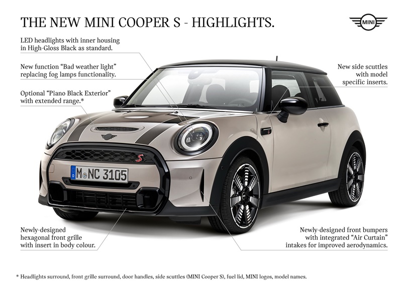 MINI เปิดตัวรุ่นปรับโฉม LCI อีกครั้งในตัวถังเดิม โดยเน้นไปที่การปรับดีไซน์ทั้งภายนอก และ ภายในห้องโดยสาร เสริมด้วยลูกเล่นและความปลอดภัยที่มากขึ้น มีให้เลือกทั้งตัวถัง Hatch 3 – Hatch 5 ประตู และ เปิดประทุน Convertible ส่วนขุมพลังเป็นเบนซินเทอร์โบ 3 สูบ 1.5 ลิตร และ 4 สูบ 2.0 ลิตร เสริมด้วยขุมพลัง EV