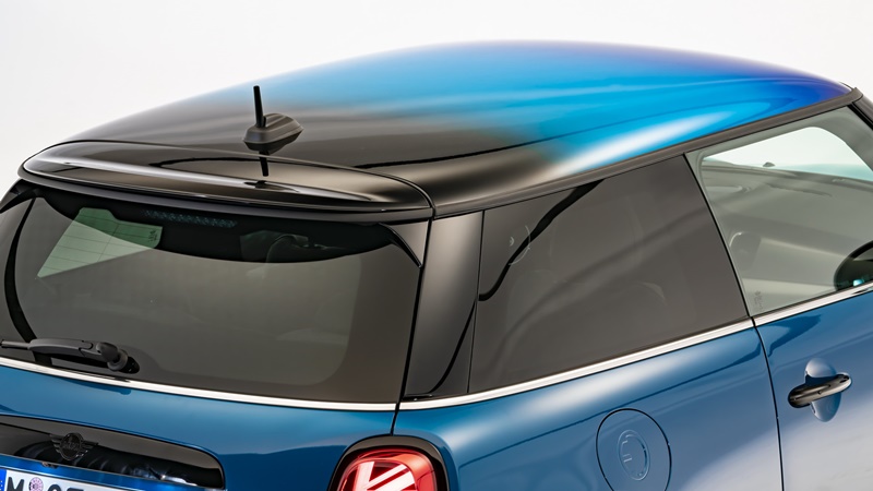ภายนอกของ MINI รุ่นล่าสุด เพิ่มสีตัวถังมาใหม่ 3 สีทั้ง สีเทา Rooftop Grey, สีน้ำเงิน Island Blue และ สีเหลือง Zesty Yellow พร้อมทางเลือกตัดสีหลังคาแบบใหม่ Multitone Roof ซึ่งเป็นการไล่โทนสีบนหลังคาจากหน้ารถที่เป็นสีน้ำเงิน San Marino Blue ไปยังสีฟ้า Pearly Aqua และ จบด้วยสีดำ Jet Black ท้ายรถ