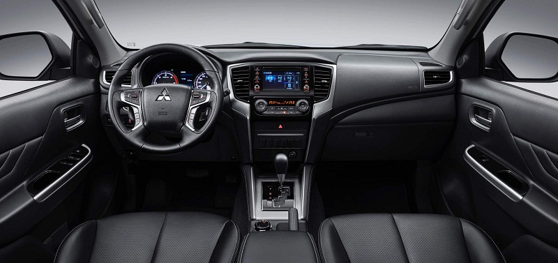 ห้องโดยสารของ Mitsubishi Triton มาพร้อมกับวัสดุบุนุ่มในหลายจุด ทั้งแผงประตู, คอลโซลกลาง และ ที่พักแขน หน้าจอแสดงผลยังทำงานร่วมกับกล้องมองภาพรอบคัน ส่วนขุมพลังระบุว่า เป็นเครื่องยนต์ดีเซลตัวใหม่ AdBlue 2.2 ลิตร เทอร์โบ แต่ไม่มีการเปิดเผยสเปค นอกจากคำโฆษณาที่ว่า ทรงพลังขึ้นและเงียบลง