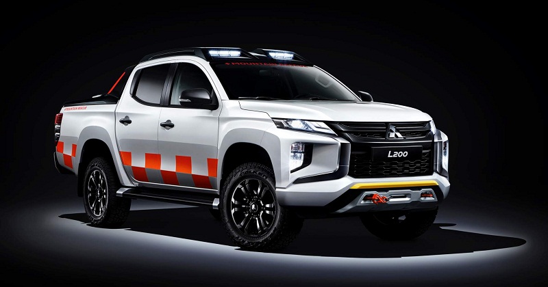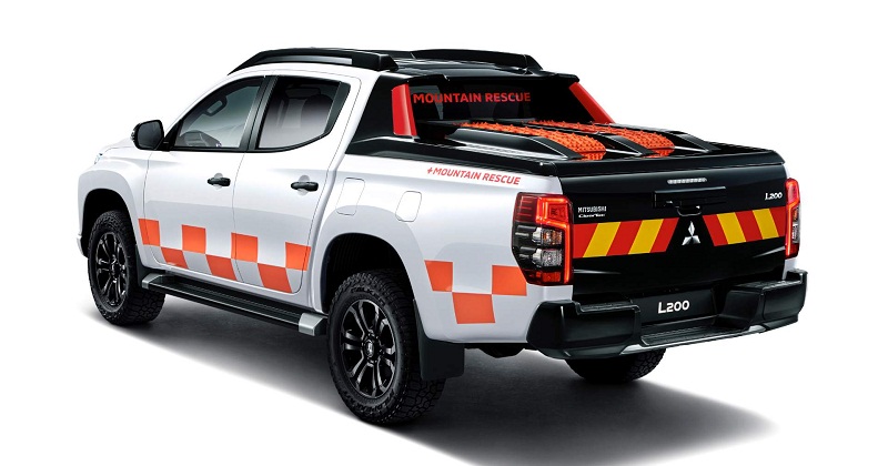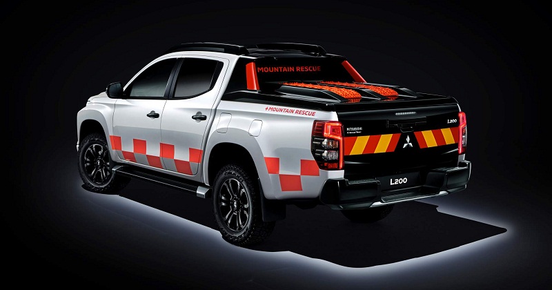 Mitsubishi Triton คันที่เห็นในภาพนี้ตกแต่งในแนวทาง รถกู้ภัยบนภูเขา (Mountain Rescue) โดยหน้าตาในภาพรวมไม่ได้แตกต่างอะไรจากรุ่น Minorchange ที่พึ่งเปิดตัวไปในบ้านเรา เสริมด้วยการนำสีดำมาตกแต่งกระจังหน้า, มือเปิดประตู, ล้อ, หลังคา, กระจกมองข้าง, กันชนหลัง และ ฝากระบะ
