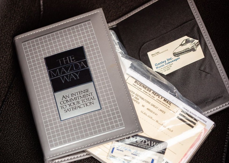 Mazda MX-5 คันนี้จึงอยู่ในสภาพพร้อมใช้งาน และมีอุปกรณ์ติดมาด้วยราวกับรถป้ายแดงพึ่งออกศูนย์ ไม่ว่าจะเป็นพลาสติกห่ออุปกรณ์ท้ายรถ, ป้ายโปรโมทศูนย์ที่ออกรถ, เอกสารซื้อขาย, คู่มือประจำรถ และใบเสร็จซ่อมบำรุงทุกรายการ