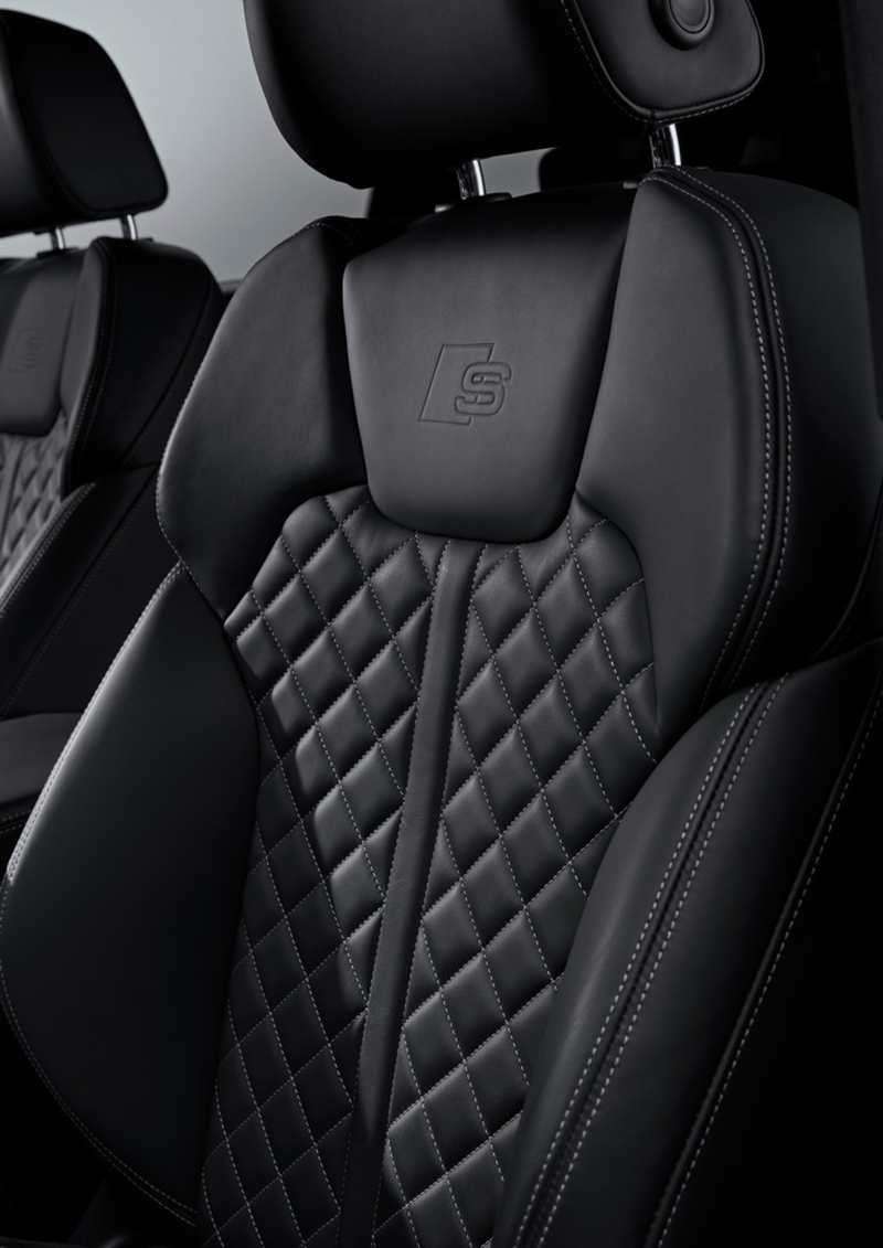 ทางด้านภายในห้องโดยสารนั้น ใช้โทนสีเข้ม และเพิ่มโลโก้ S ในหลายต่ำแหน่ง อาทิ พวงมาลัย, ฐานคันเกียร์, บนตัวเบาะหนังสไตล์สปอร์ต ที่ผสมผสาน Alcantara, ธรณีประตู และในส่วนของแป้นเหยียบ ได้นำวัสดุ Stainless Steel มาใช้ ขณะที่แป้น Paddle Shift เคลือบด้วยสีอะลูมิเนียมปัดเงา พร้อมกันนี้ ยังสามารถอัปเกรดตัวเบาะไปเป็นหนัง Nappa ที่ตัดเย็บเป็นลวดลายสี่เหลี่ยมขนมเปียกปูน รวมไปถึงทริมตกแต่ง ที่เลือกได้ว่าจะเป็นงานไม้ หรือ Carbon Fiber