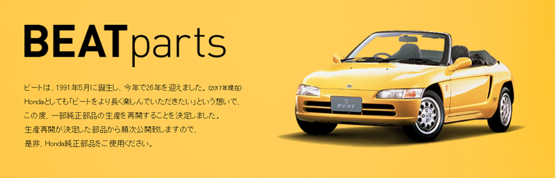 เพื่อเป็นการเฉลิมฉลองในโอกาสที่ Honda Beat มีอายุครบ 26 ปี หลังถือกำเนิดในเดือนพฤษภาคม 1991 Honda ตัดสินใจกลับมาผลิตอะไหล่แท้ของใหม่ 46 รายการ ให้กับรถยนต์รุ่นนี้อีกครั้ง โดยจะเริ่มก่อน 8 รายการ ประกอบไปด้วย ระบบไอดี, ระบบไอเสีย, ชุดเพลารอง, ชุดคลัชต์, เสื้อเกียร์, ระบบเชื้อเพลิง และปีกนกล่าง ซึ่งจะออกขายตั้งแต่วันที่ 26 มกราคมนี้ เป็นต้นไป