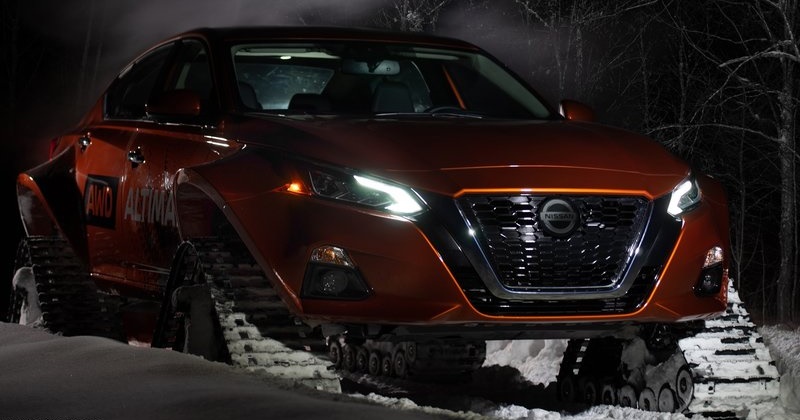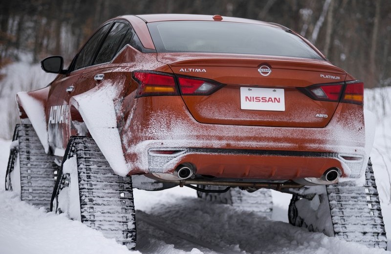 Nissan Altima-te AWD มีพื้นฐานมาจาก Nissan Altima รุ่นปี 2019 ที่ใช้ระบบขับเคลื่อน 4 ล้อ ผ่านการดัดแปลงใหม่ด้วยการดึงโป่งออกมาฝั่งละ 180 มิลลิเมตร ซึ่งไม่ใช่เพื่อแค่ให้ยัดชุดตีนตะขาบลงไปได้เท่านั้น แต่ยังช่วยกันไม่ให้หิมะปลิว มาบดบังทัศนวิสัยคนขับด้วย
