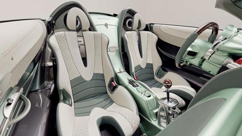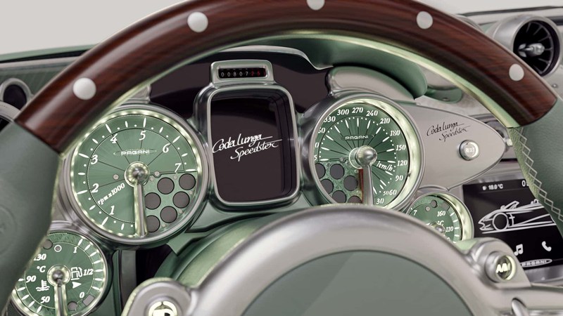 ห้องโดยสารของ Pagani Huayra Codalunga Speedster คุมโทนย้อนยุค ด้วยการใช้สีกึ่งด้านและอะลูมิเนียมปัดเงาตกแต่งรอบคัน ปราศจากซึ่งลายคาร์บอนไฟเบอร์และไททาเนียม พวงมาลัยมาในทรงท้ายตัด พร้อมทั้งนำไม้มาตกแต่งส่วนบนและส่วนล่างของวง รวมถึงเกียร์ด้วย ส่วนช่องลมแอร์ยังคงเป็นทรงกลมเหมือนเครื่องยนต์ของเครื่องบินเช่นเคย ระบบแสดงผลเป็นจอเข็มทรงกลมคู่ กั้นกลางด้วยช่องสี่เหลี่ยมติดโลโก้ชื่อรุ่นทำจากโลหะ