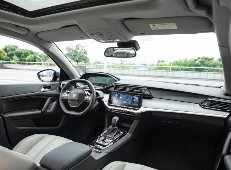 ห้องโดยสารของ Peugeot 408 ปรับใหม่เป็นแบบ iCockpit มาพร้อมกับมาตรวัดดิจิตอล ขนาด 12 นิ้ว ที่ย้ายตำแหน่งให้สูงขึ้นจากเดิม ส่วนหน้าจอสัมผัสกลางมีขนาด 10 นิ้ว ติดตั้งเหนือแผงปุ่มควบคุมสไตล์สวิตช์เครื่องบิน พวงมาลัยขนาดเล็กยังคงอยู่ ปิดท้ายกับการตกแต่งด้วยวัสดุอะลูมิเนียมรอบคัน