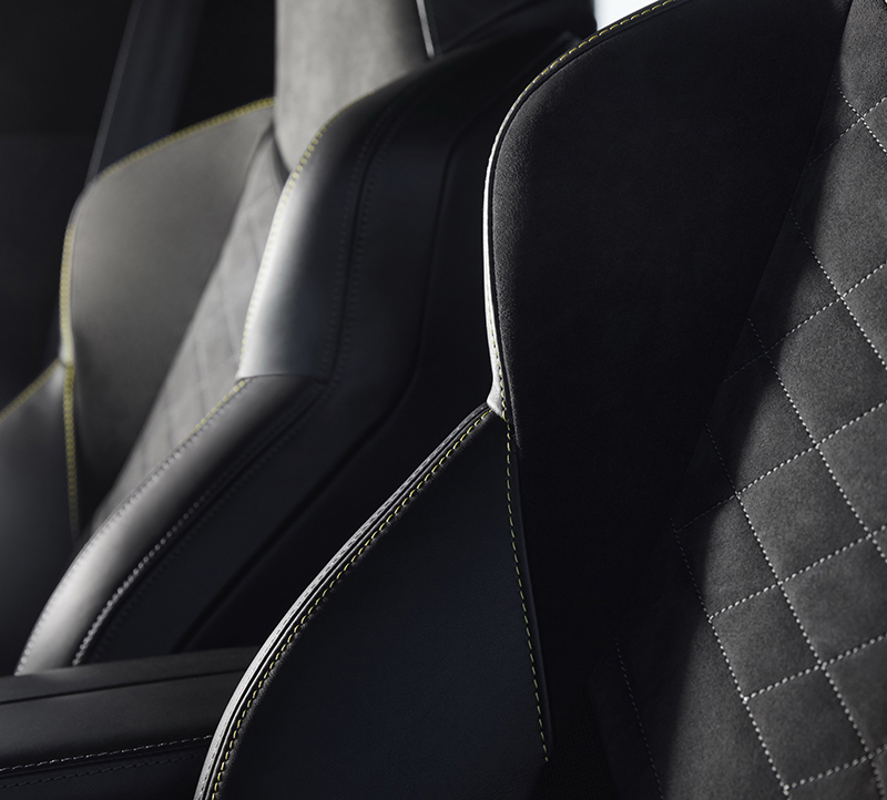 ก้าวเข้ามาที่ภายในห้องโดยสาร จะพบกับการตกแต่งที่ให้อารมณ์สปอร์ตเต็มขั้น ด้วยการใช้วัสดุหนัง Alcantara บริเวณส่วนของ ตัวเบาะ, พวงมาลัย, แผงแดชบอร์ด, เสา A-Pillar ผสมผสานเข้ากับ ชิ้นวัสดุลวดลาย Carbon Fiber นอกจากนี้ ยังใช้ทริมตกแต่งที่เรียกว่า Kryptonite สอดแทรกเข้าไปอยู่บนแผงประตู และแผงแดชบอร์ดอีกด้วย