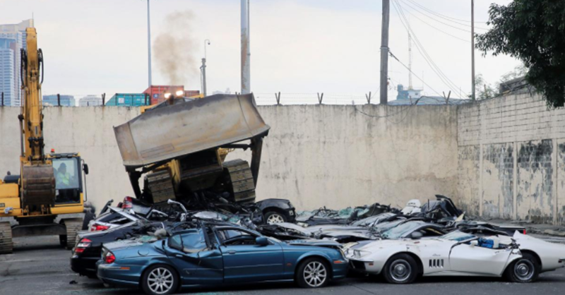 นับว่าเป็นข่าวที่สร้างความปวดใจให้กับคนรักรถไม่น้อย ที่ต้องดูรถยนต์หายากสภาพดีหลายสิบคัน รวมถึง 1969 Chevrolet Corvette ถูกแปรสภาพเป็นเศษเหล็กภายในไม่กี่นาที ซึ่งสาเหตุที่ทำให้รถยนต์เหล่านี้ถูกทำลาย คือการถูกนำเข้าไปยังประเทศฟิลิปปินส์โดยผิดกฎหมาย จนนำไปสู่จุดจบแบบโศกนาฏกรรม ตามที่ปรากฏในภาพ