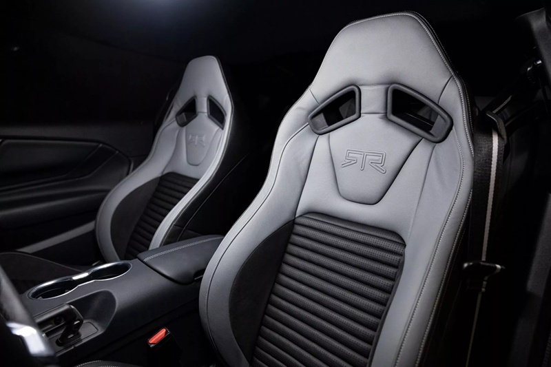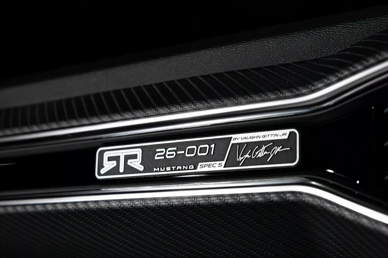 RTR Spec 5 Mustang มาพร้อมกับยาง Michelin Pilot Sport 4S กว้าง 305 ในด้านหน้า และ 315 ในด้านหลัง ด้านในล้อมีคาลิปเปอร์เบรกสองชิ้น Brembo ขนาด 6 สูบ ในด้านหน้า และ 4 สูบ ในด้านหลัง ห้องโดยสารมีเบาะ RECARO หุ้มหนังสีเทาตัดด้วยหนังกลับสีดำ พร้อมประทับตรา RTR ทั้งยังมีพรมพื้นเฉพาะรุ่น, หัวเกียร์ทรงหยดน้ำ และก้านเบรกมือแบบ electronic drift brake เพื่อใช้ในการดริฟท์โดยเฉพาะ บนแดชบอร์ดบ่งบอกความพิเศษด้วยหมายเลขประจำรถ พร้อมสลักลายเซ็นเจ้าสำนัก Vaughn Gittin Jr.